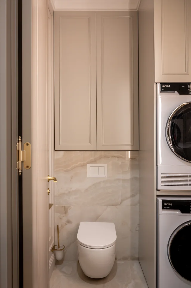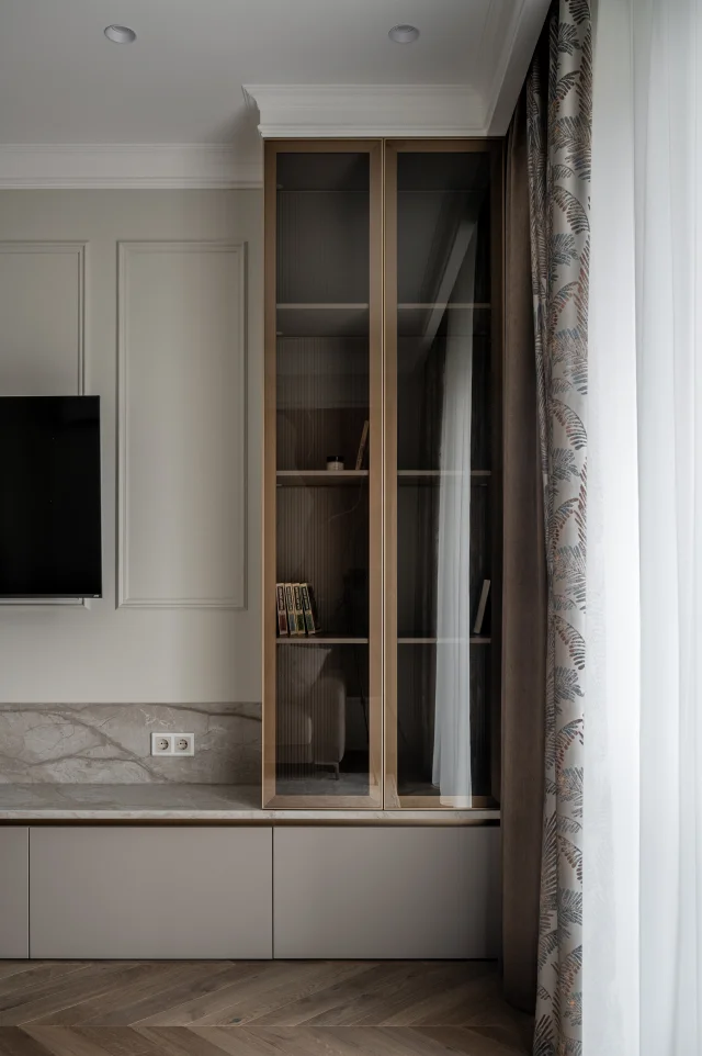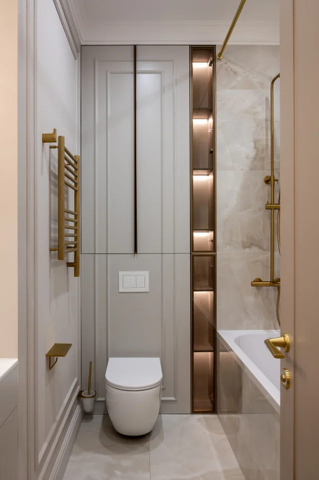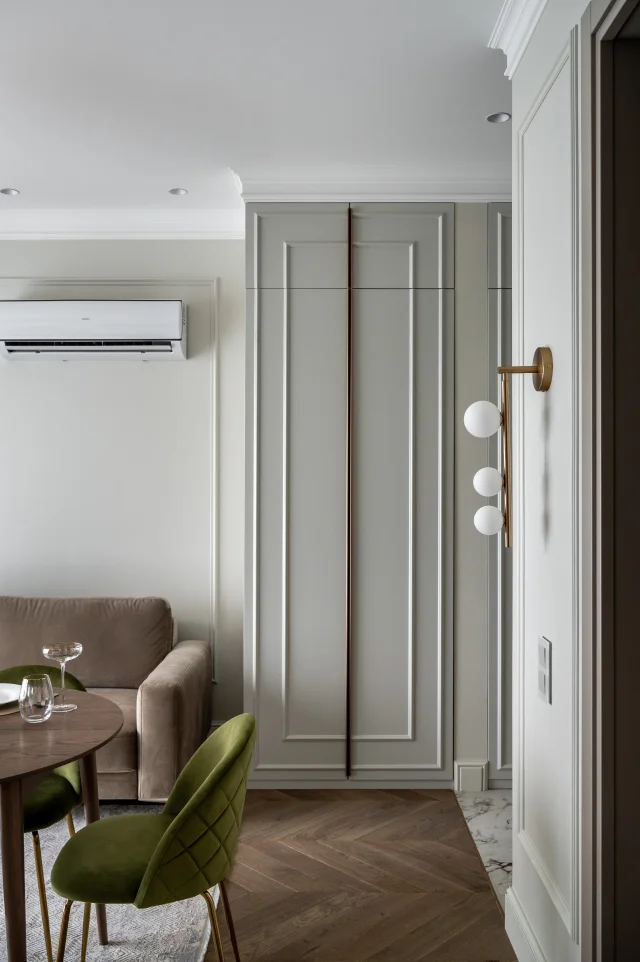 В проекте использованы основные стилевые решения, например: современный минимализм с элементами лофта, а также умное освещение, скрытое хранение, авторская мебель.